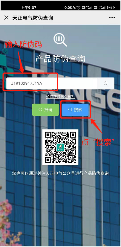 您也可以通过关注金年会电气公众号进行产品防伪查询